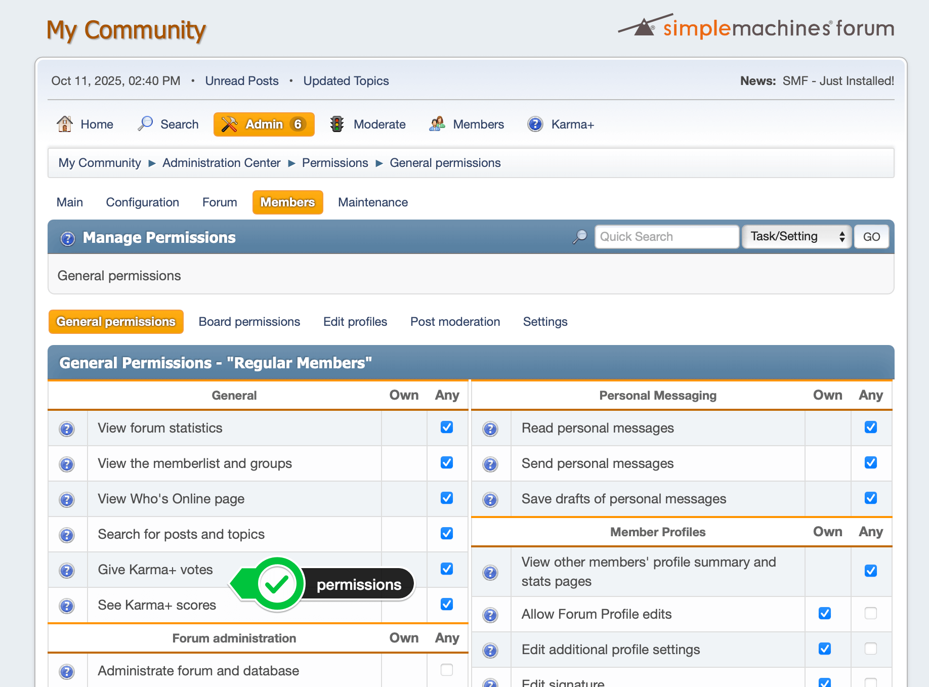 Permissions integration: “Give Karma+ votes”, “See Karma+ scores”, and bypass link limits permission